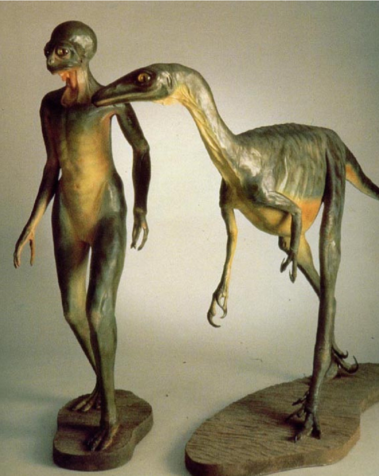 Dinosauroid (L) and Troodon (R) (sculptures by Dale A. Russell and Ron Seguin, 1982, Canadian Museum of Nature).